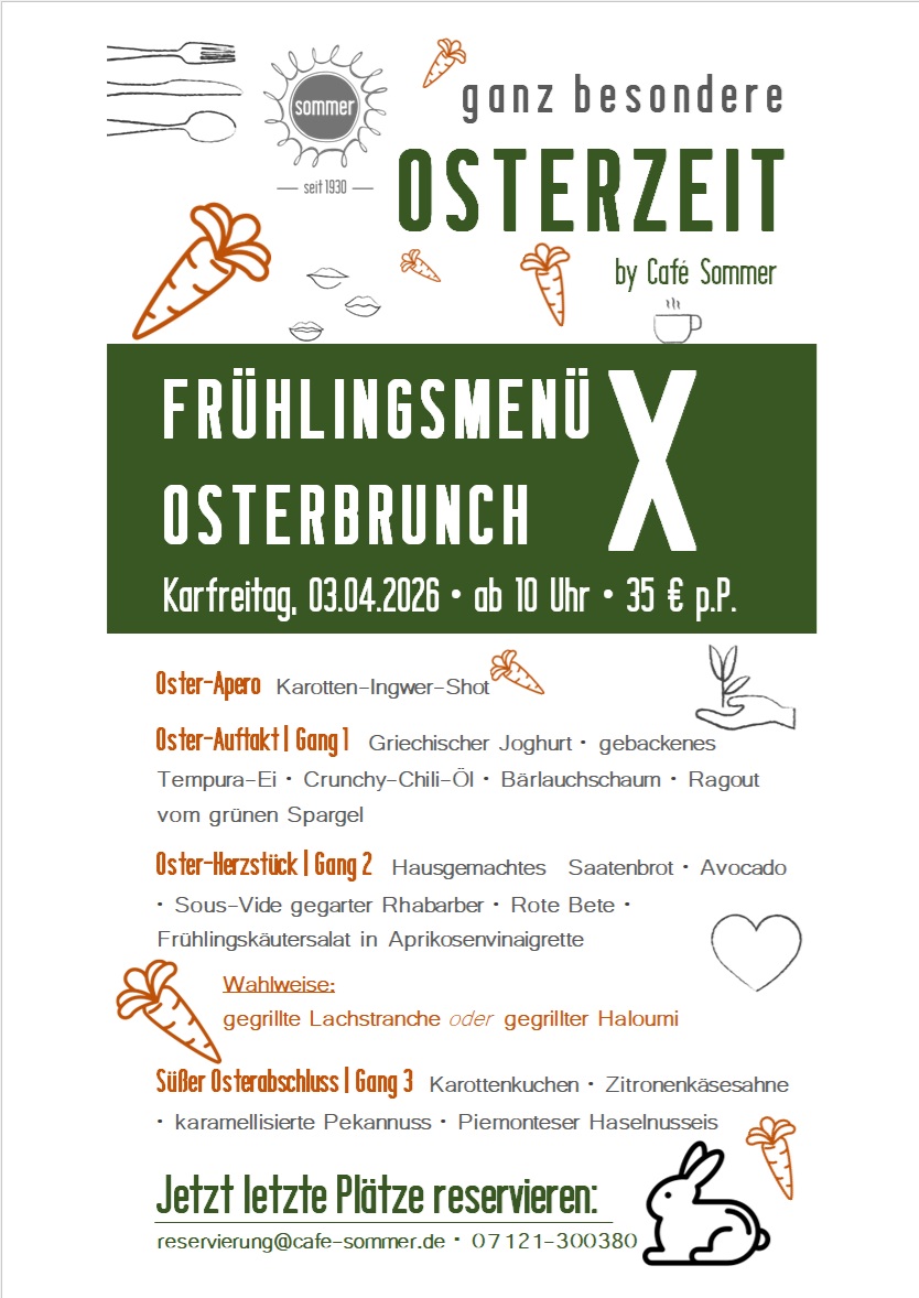 Drei-Gänge-Osterbrunchmenü / 35 € p. P. 11 - 14 Uhr